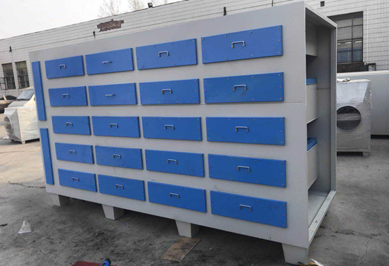 2、活性碳吸附裝置適用范圍:該裝置運用于大風量低濃度的有機廢氣處理設備,可處理苯類、酮類、醇類、、烷類及其混合類有機廢氣,主要用于化工、機械、電子、電器、涂裝、制鞋、橡膠、塑料、印刷及各種工業生產車間產生的有害廢氣的凈化處理。活性碳吸附塔,系利用高性能活性碳吸附劑固體本身的表面作用力,將有機廢氣分子之吸附質吸引附著再吸附劑表面,能對苯、醇、酮、酯、汽油類等有機溶劑的廢氣吸附,適用于大風量低濃度的廢氣治理,適用于電子、化工、輕工、橡膠、油漆、涂裝、印刷、機械、船舶、汽車、石油等行業。該活性炭吸附裝置主要由活性炭層和承托層組成?;钚蕴烤哂邪l達的空隙,比表面積大,具有很高的吸附能力。正是由于活性炭的這種特性,它在水的處理中被廣泛應用,如生活給水,污水后段的(凈水)處理等。