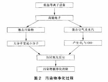 本工程主要采用電暈放電形式處理廢氣,在外加電場(chǎng)的作用下,電暈或者介質(zhì)放電產(chǎn)生了大量攜能電子轟擊污染物分子,使其電離、解離和激發(fā),然后便引發(fā)了一系列復(fù)雜的物理、化學(xué)反應(yīng),使復(fù)雜大分子污染物轉(zhuǎn)變?yōu)楹?jiǎn)單小分子安全物質(zhì),或使有毒有害物質(zhì)轉(zhuǎn)變成無毒無害或低毒低害的物質(zhì),從而使污染物得以降解去除。