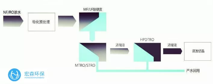 宏森作為一家專注于膜工藝處理垃圾滲濾液的成熟的企業(yè),擁有豐富的DTRO膜應(yīng)用經(jīng)驗,擁有超過60個DTRO項目業(yè)績,經(jīng)過與多家滲濾液工程公司和設(shè)計院聯(lián)合開發(fā),成功驗證并實施了使用DTRO膜技術(shù)對NF-RO進(jìn)行減量化的工藝。該工藝簡單可靠,無需預(yù)處理,不產(chǎn)生無極污泥。