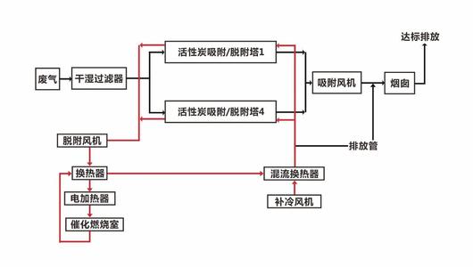 催化燃燒裝置一共分為兩個部分,即吸附和催化燃燒。有機廢氣在進入催化燃燒設(shè)備后,廢氣中的有害物質(zhì)被活性炭吸附,當(dāng)活性炭快達到飽和時停止吸附,然后用熱氣流將有機物從活性炭上脫附下來使活性炭再生;脫附下來的有機物已被濃縮(濃度較原來提高幾十倍)并送往催化燃燒室催化燃燒成二氧化碳及水蒸氣排出。