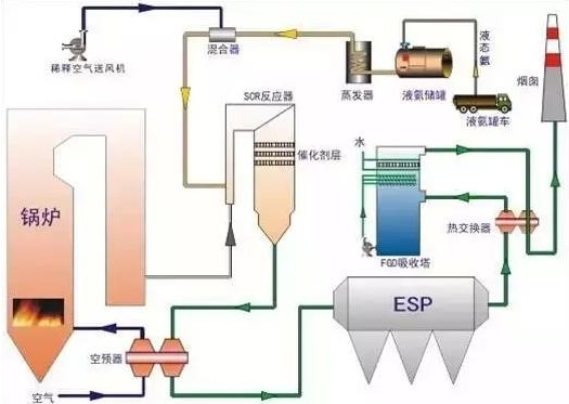 在金屬催化劑作用下,以NH3作為還原劑,將NOx還原成N2和H2O。NH3不和煙氣中的殘余的O2反應,而如果采用H2、CO、CH4等還原劑,它們在還原NOx的同時會與O2作用,因此稱這種方法為“選擇性”。